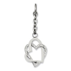 Stainless Steel Double Hearts with CZ Interchangeable Charm Pendant