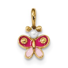 14k Madi K Kids FW Cultured Pearl and Enameled Butterfly Pendant