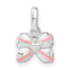 Sterling Silver Pink Enamel Kid's Bow Pendant