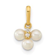 14k Childrens White Freshwater Cultured Pearl and CZ Pendant