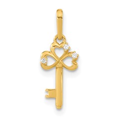 14k Childrens CZ Key with Hearts Pendant
