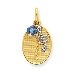 14k Two-tone Harmony with Treble Clef and Blue Crystal Pendant