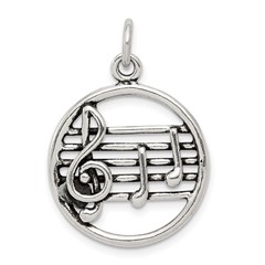 Sterling Silver Antiqued Music Staff Charm