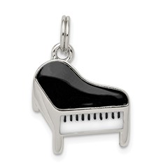 14k White Gold Solid Polished Baby Grand Piano Charm