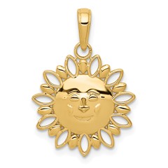 14K Polished Smiling Sun With 2-D Alternate Cut-out Edges Pendant