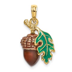 14K 3-D Enameled Acorn with Leaf Charm