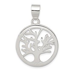 Sterling Silver Polished Round Tree Pendant