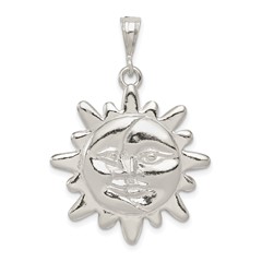 Sterling Silver Polished Sun and Half Moon Face Pendant