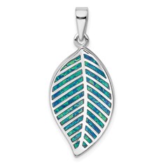 Sterling Silver Rhodium-plated Blue Created Opal Leaf Pendant