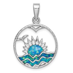 Sterling Silver Rhodium-plated Blue Inlay Created Opal Sunrise Pendant
