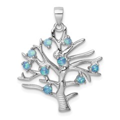 Sterling Silver Created Opal Tree Pendant