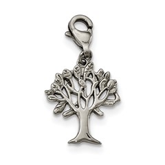 Stainless Steel Polished Tree of Life with Lobster Clasp Charm