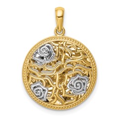 14K White Rhodium Rose Pendant