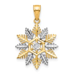 14k and Rhodium Diamond-cut Snowflake Pendant