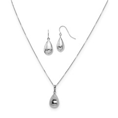 14k White Gold Teardrop Dangle Earring and Pendant Necklace