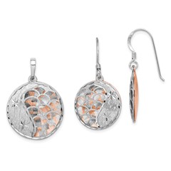 Sterling Silver Rose-tone D/C Rhodium-plated Earring/Pendant Set