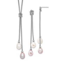 Sterling Silver Rhodium FWC Pearl Knot 18 in. Necklace and Earring Set
