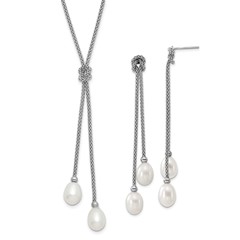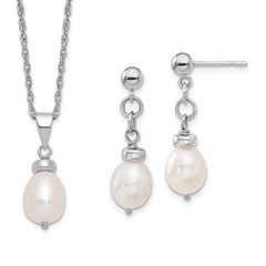 Sterling Silver 7-8mm FW Cultured Pearl Pend and Earrings Boxed Set