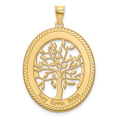 Gold Plated/SS Laser Polished Family Tree Oval Pendant
