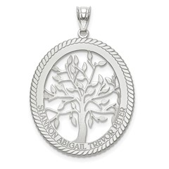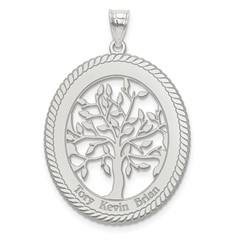 Sterling Silver Rhodium-plated Laser Polished Family Tree Oval Pendant