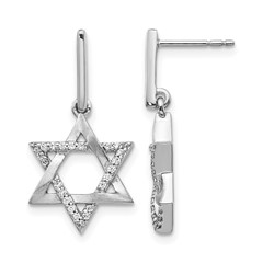 14k White Gold Diamond Star of David Dangle Earrings