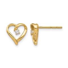 14k Gold Diamond Heart Post Earrings
