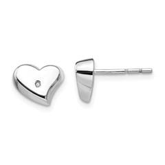 SS White Ice Satin and Polished Diamond Heart Earrings