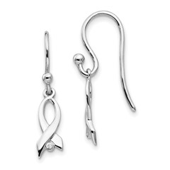 Sterling Silver Rhodium Diam. Cross Dangle Shepherds Hook Earrings