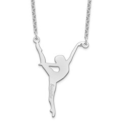 Sterling Silver Rhod-plated Laser Polished Dance Name Charm with Chain