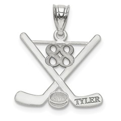 Sterling Silver Rh-plt Laser Polished Name And Number Hockey Pendant