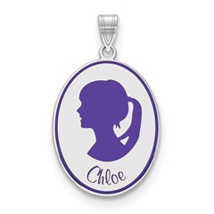 Sterling Silver Rhodium-plated Epoxied Silhouette Pendant with Name
