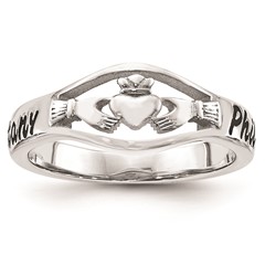 Sterling Silver Rh-plt Casted High Polish with Antique Letter Claddagh Ring