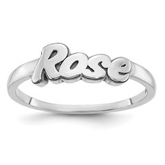 Sterling Silver Rhodium-plated Laser Polished Script Name Ring