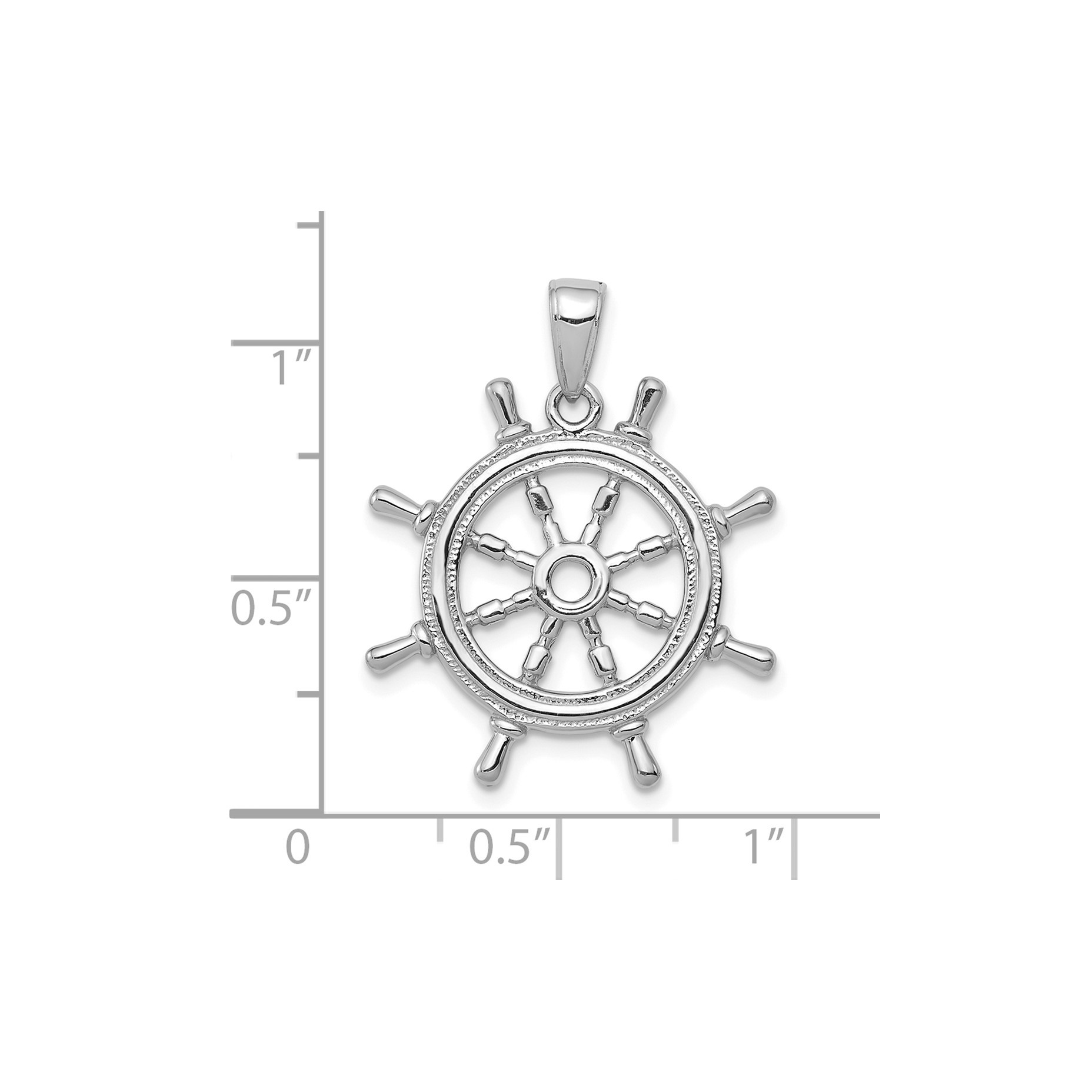 14K White Gold Ship Wheel Pendant