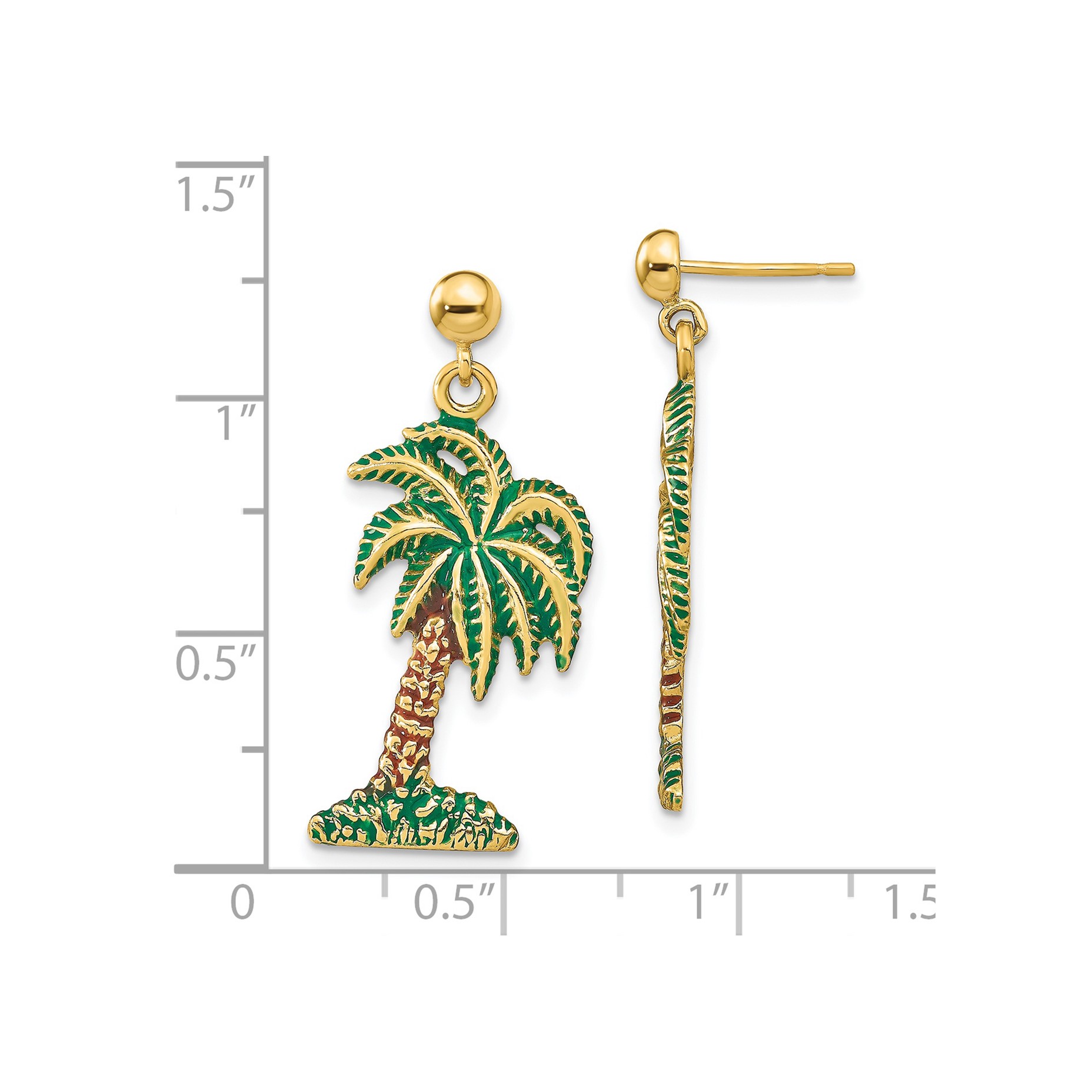 14K with Enamel Palm Tree Dangle Earrings