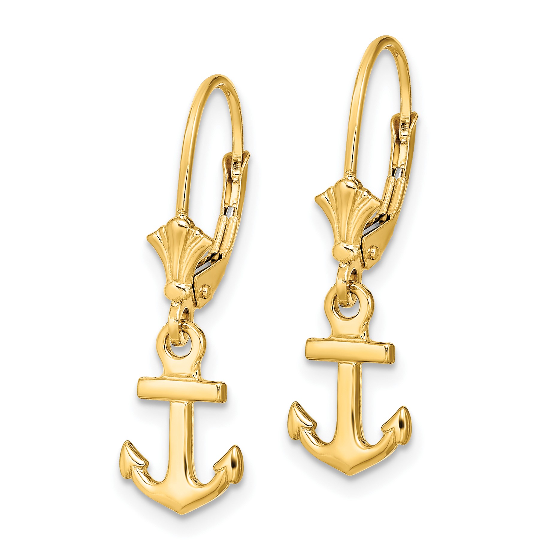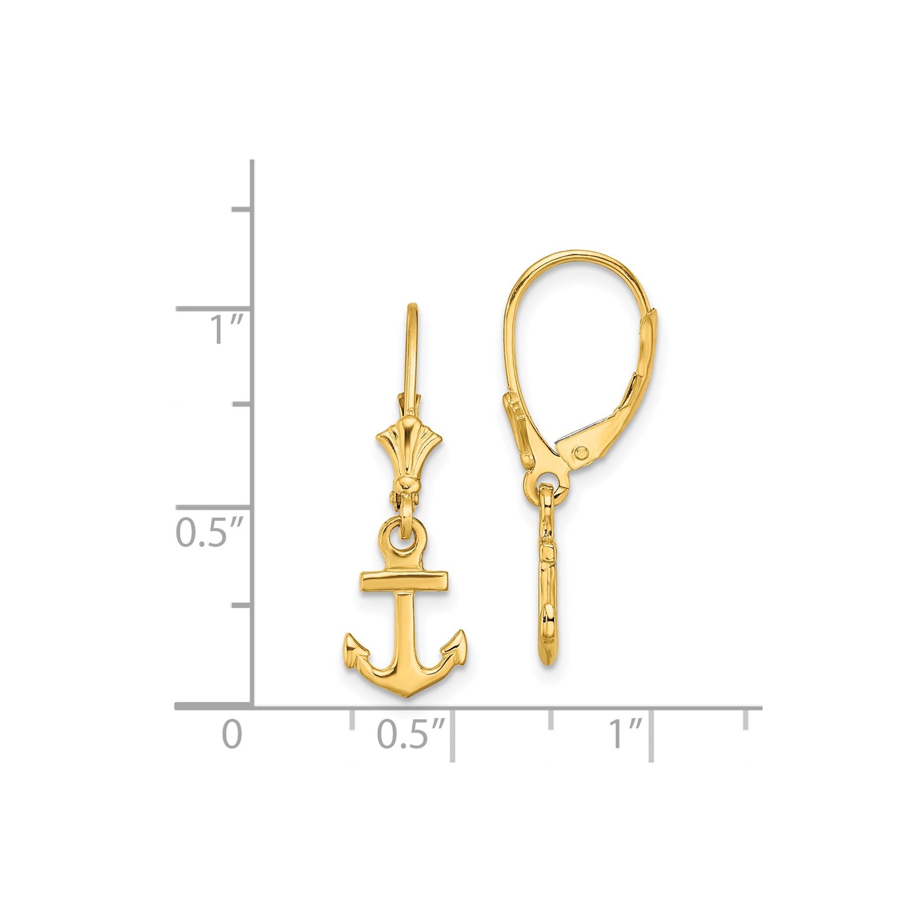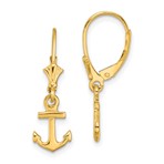 14K Polished Mini Anchor Leverback Earrings
