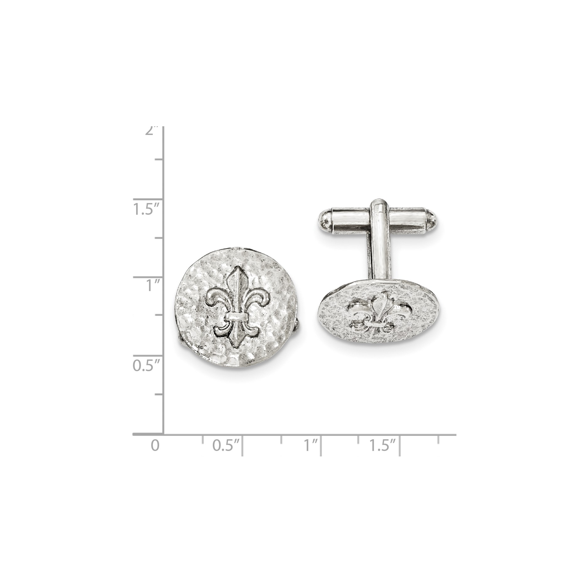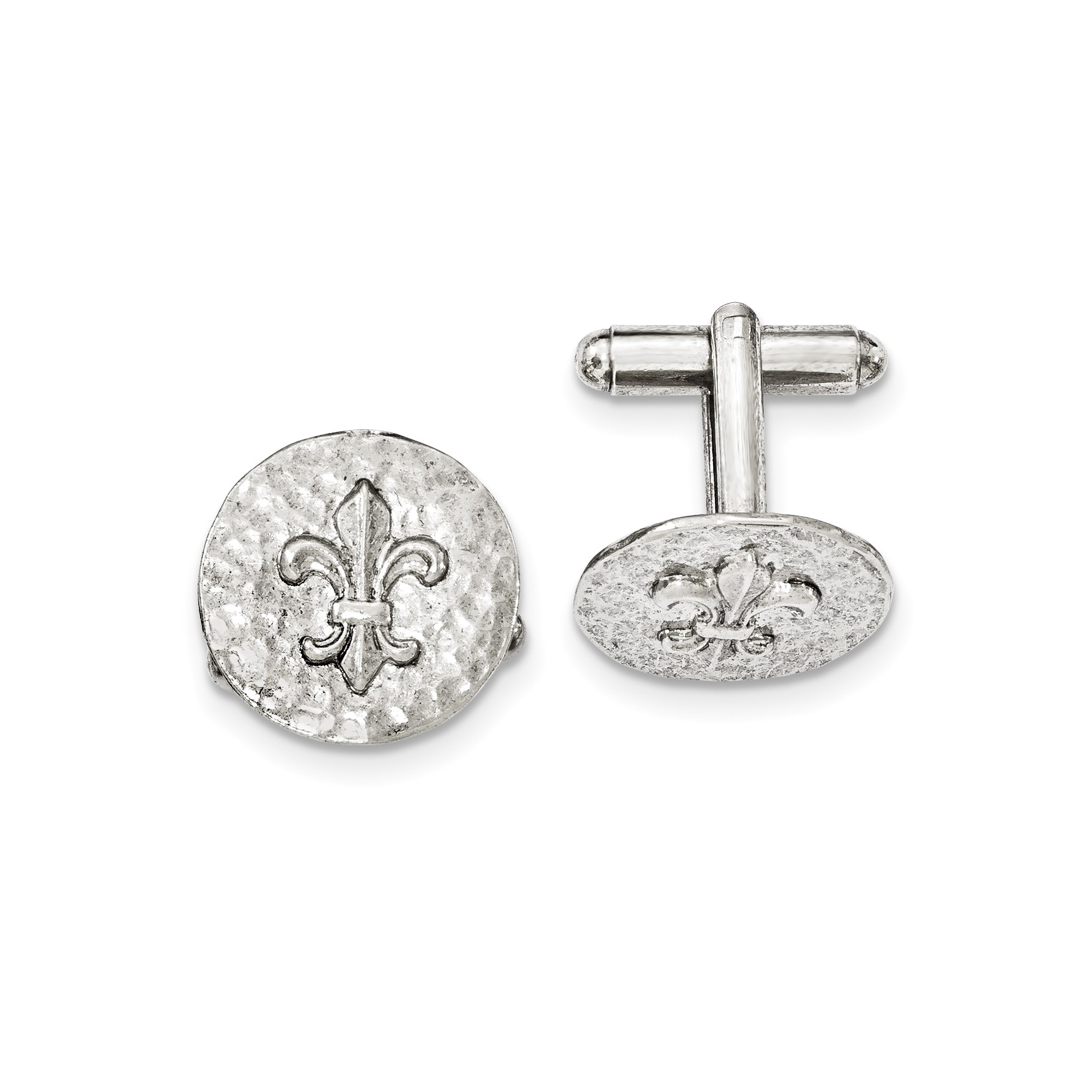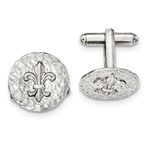 Silver-tone Fleur de Lis Textured Round Cuff Links