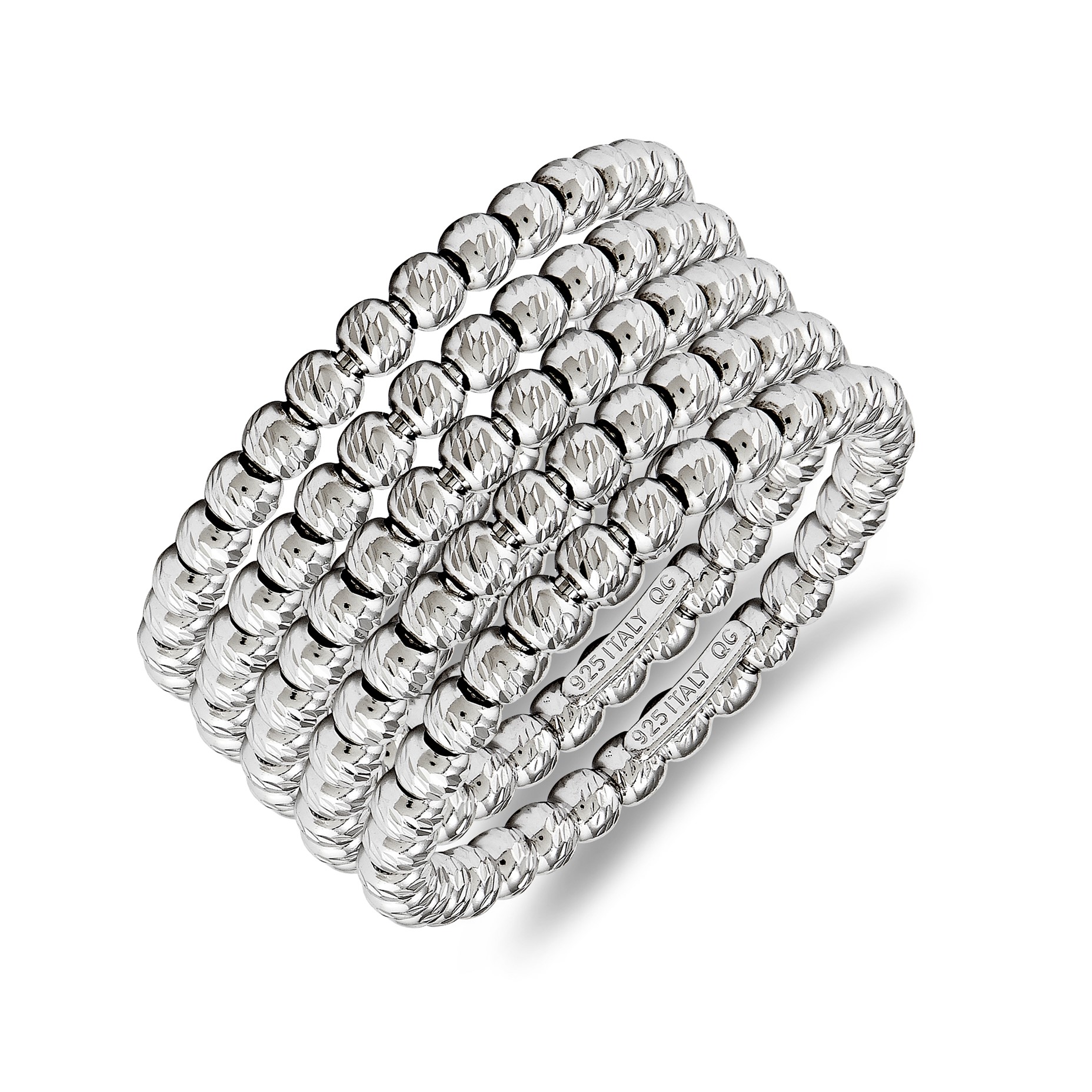 Sterling Silver DC Rhodium Bead Ring Set of 5 - Size 9