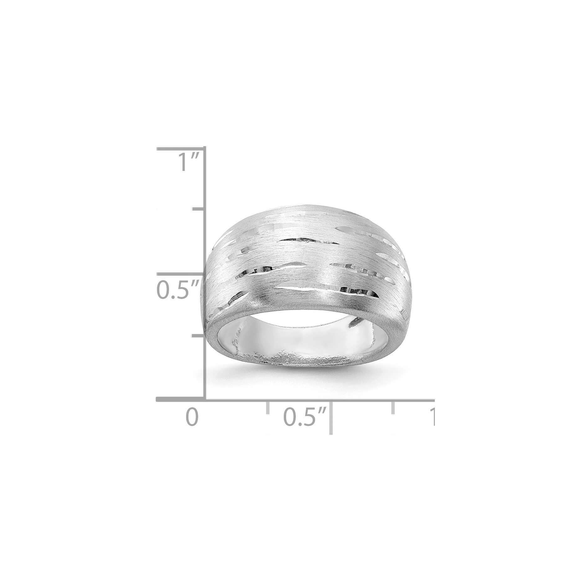 Sterling Silver Brushed/Diamond-cut Convex Ring