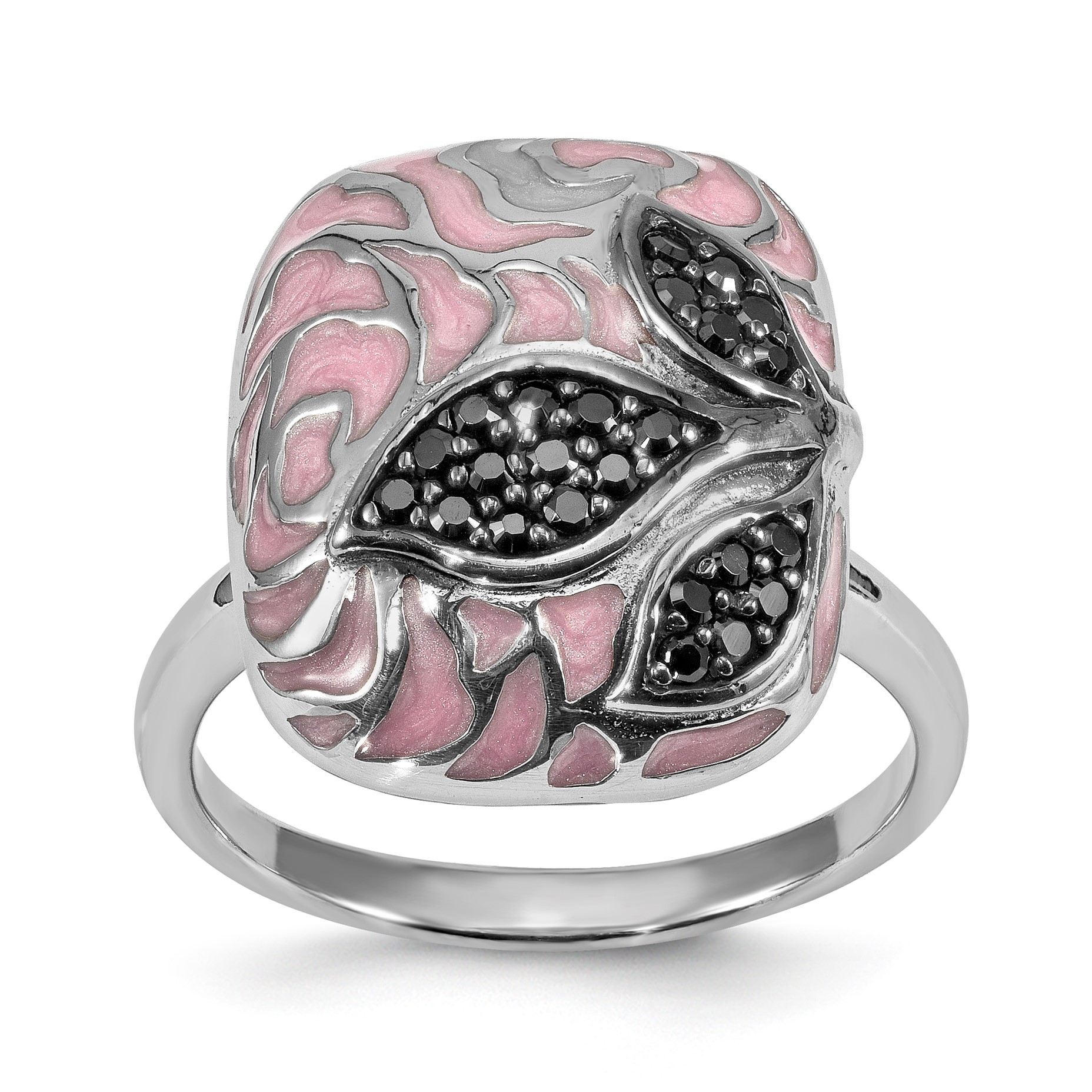 Sterling Silver Pink Enamel and black CZ Ring