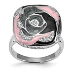 Sterling Silver Square Enamel Rose Ring with crystal accents
