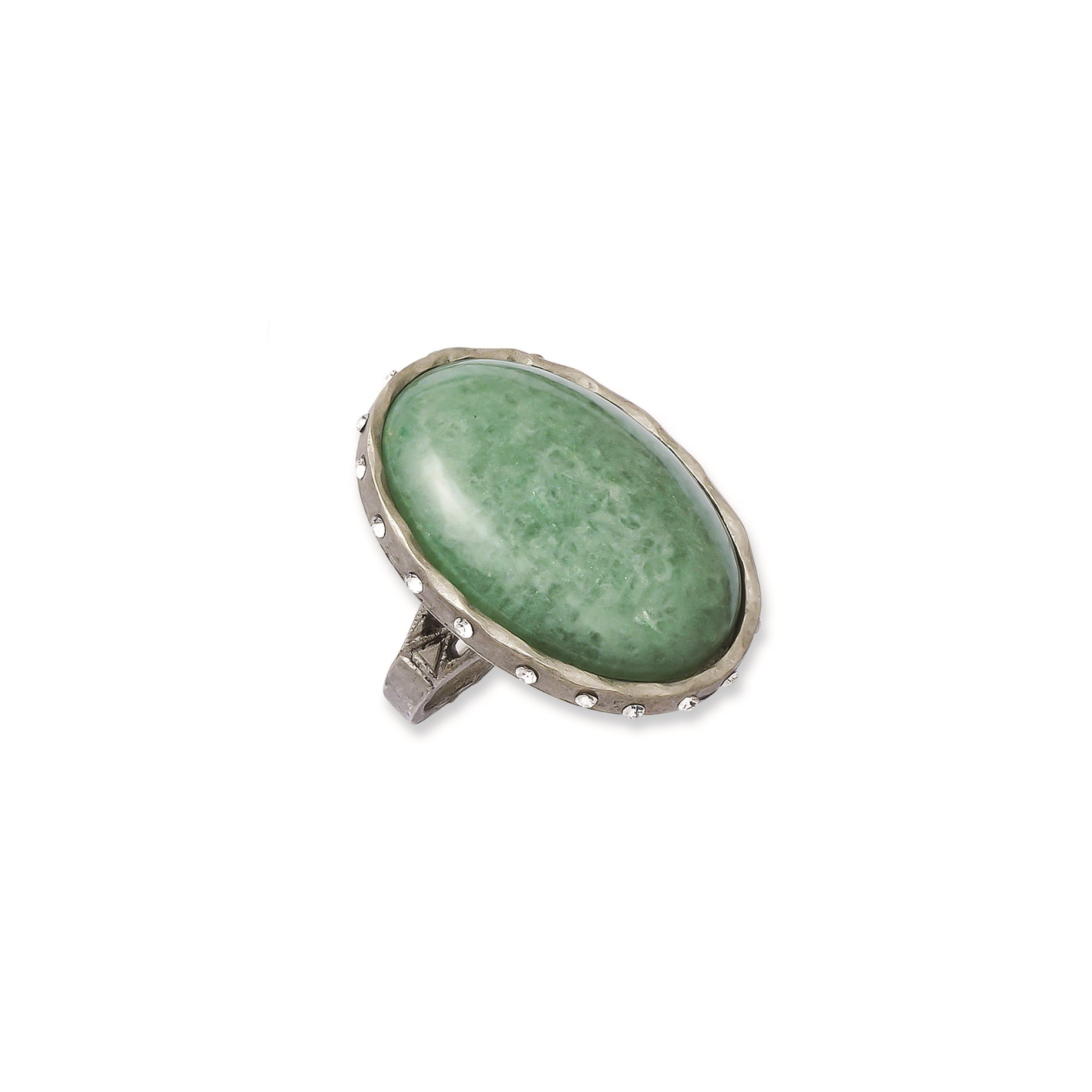 TRU Pewter Green Aventurine with Swarovski Crystals Ring
