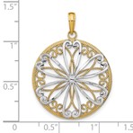 14k with Rhodium-Plated Filigree Center In Round Frame Charm