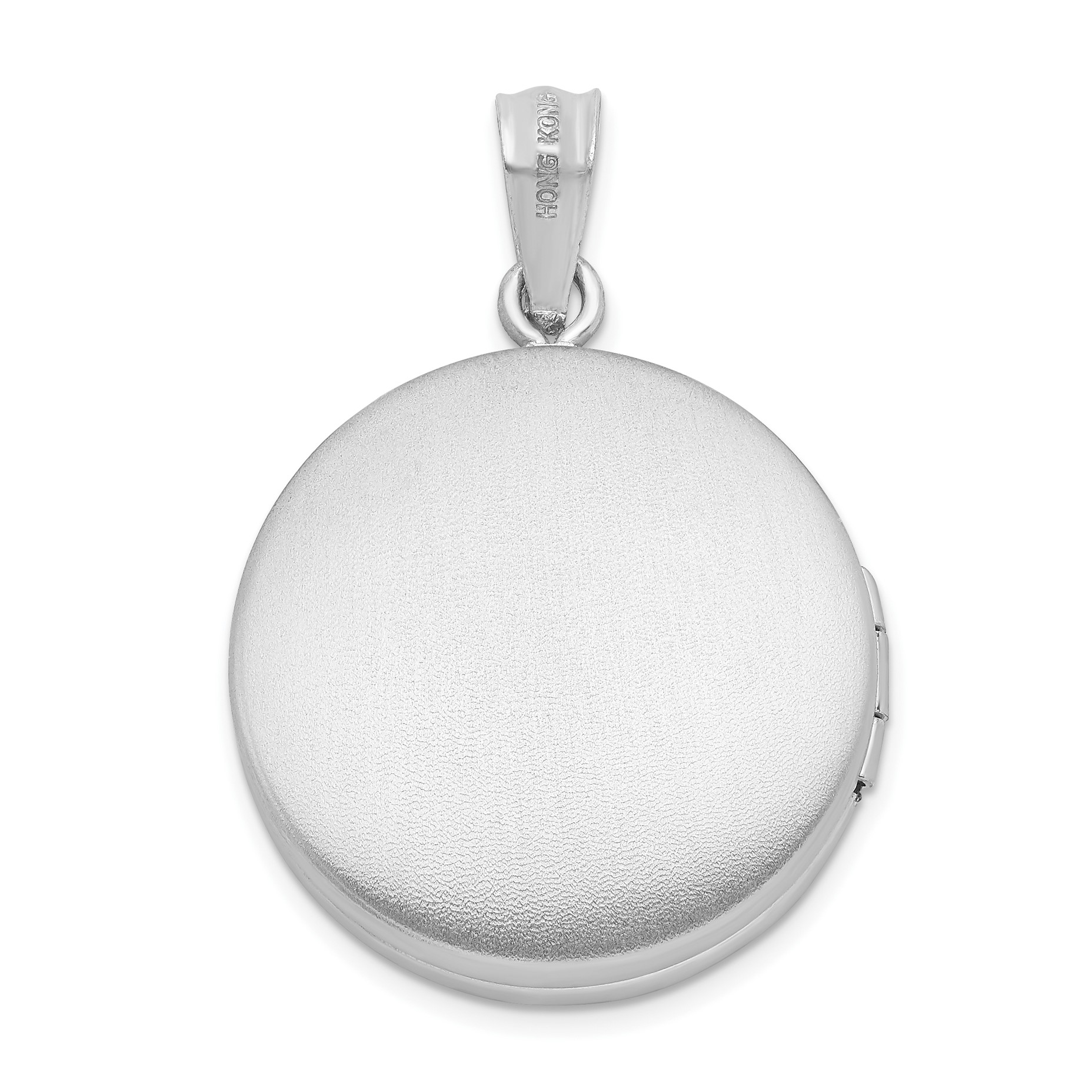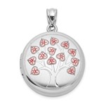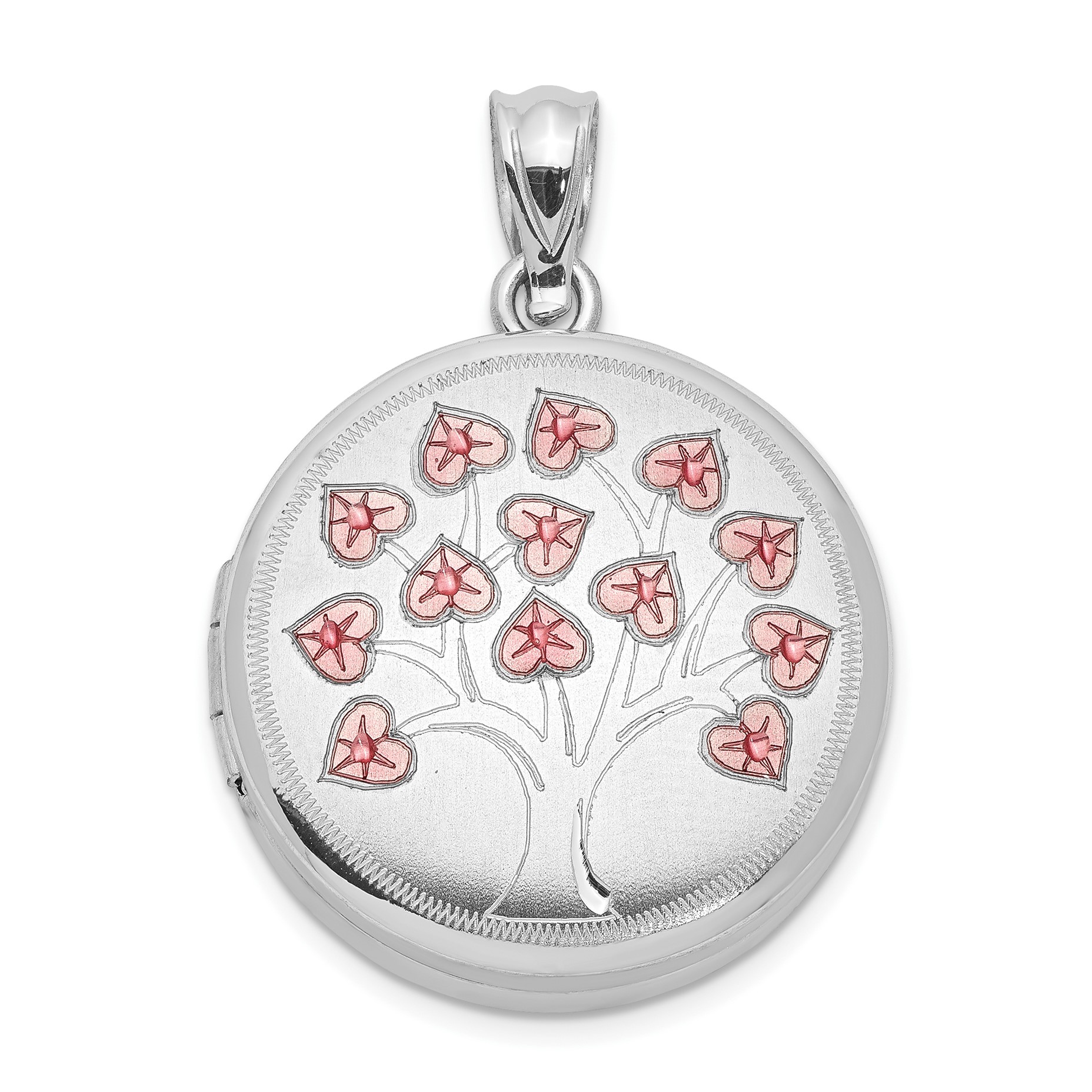 Sterling Silver Rhodium-plated Brush/Polished Pink Enamel Tree Round Locket