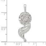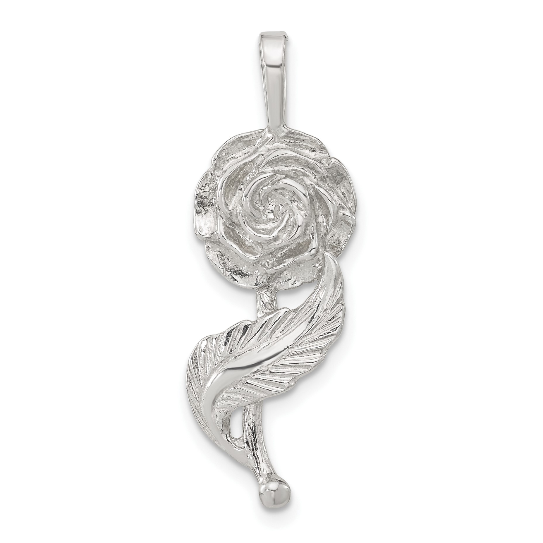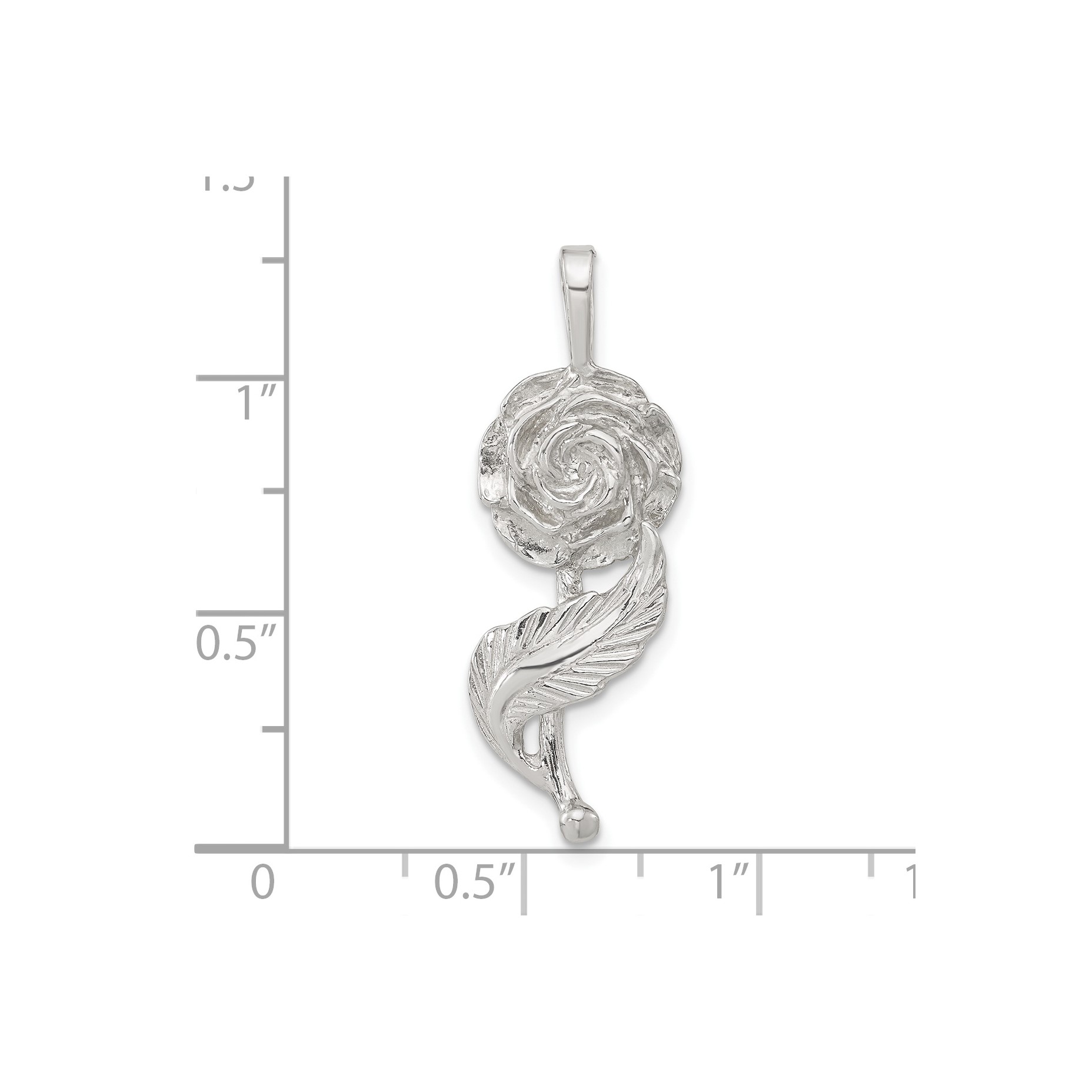 Sterling Silver Polished Rose on Stem with Leaf Pendant