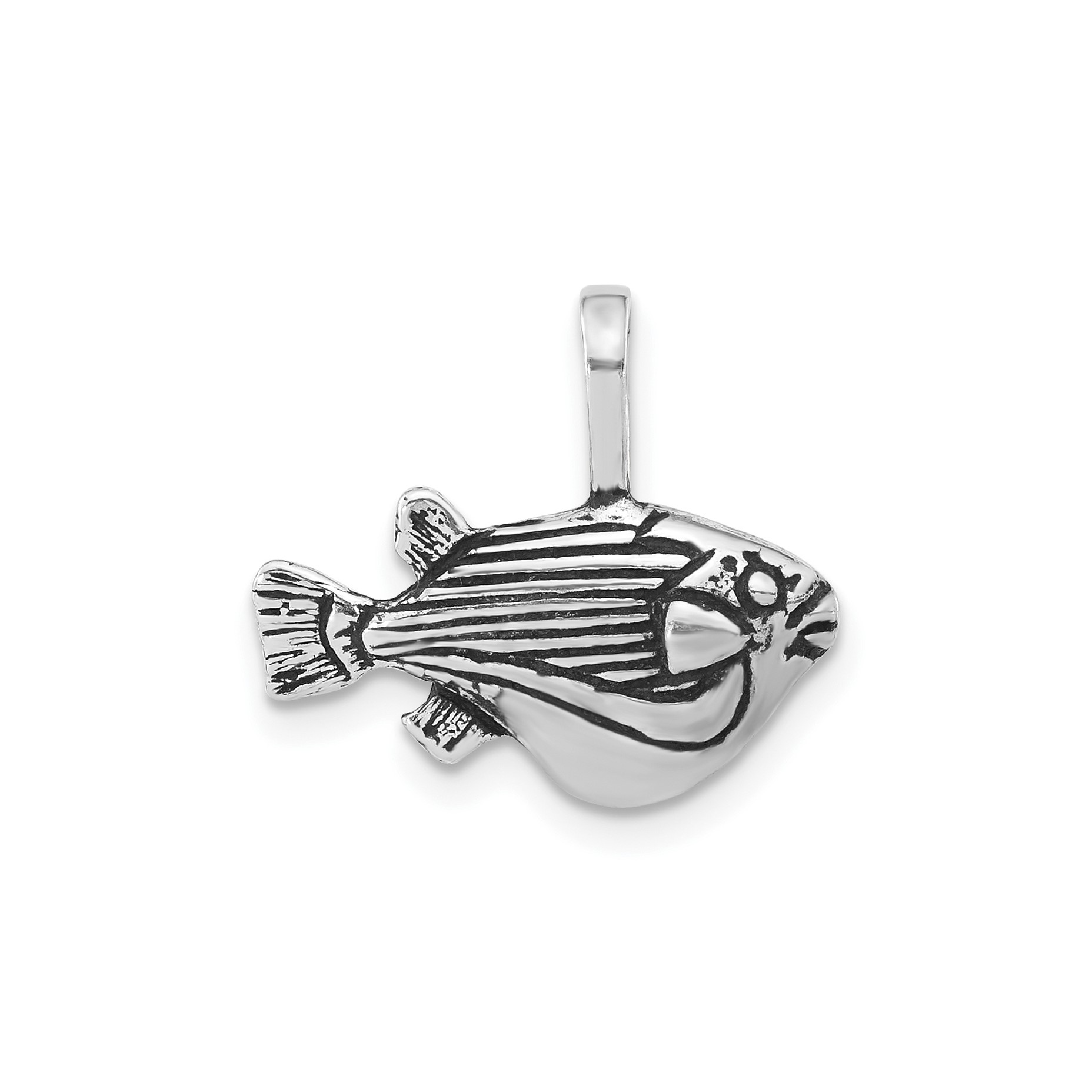 Sterling Silver Antiqued Big Belly Fish Chain Slide Pendant