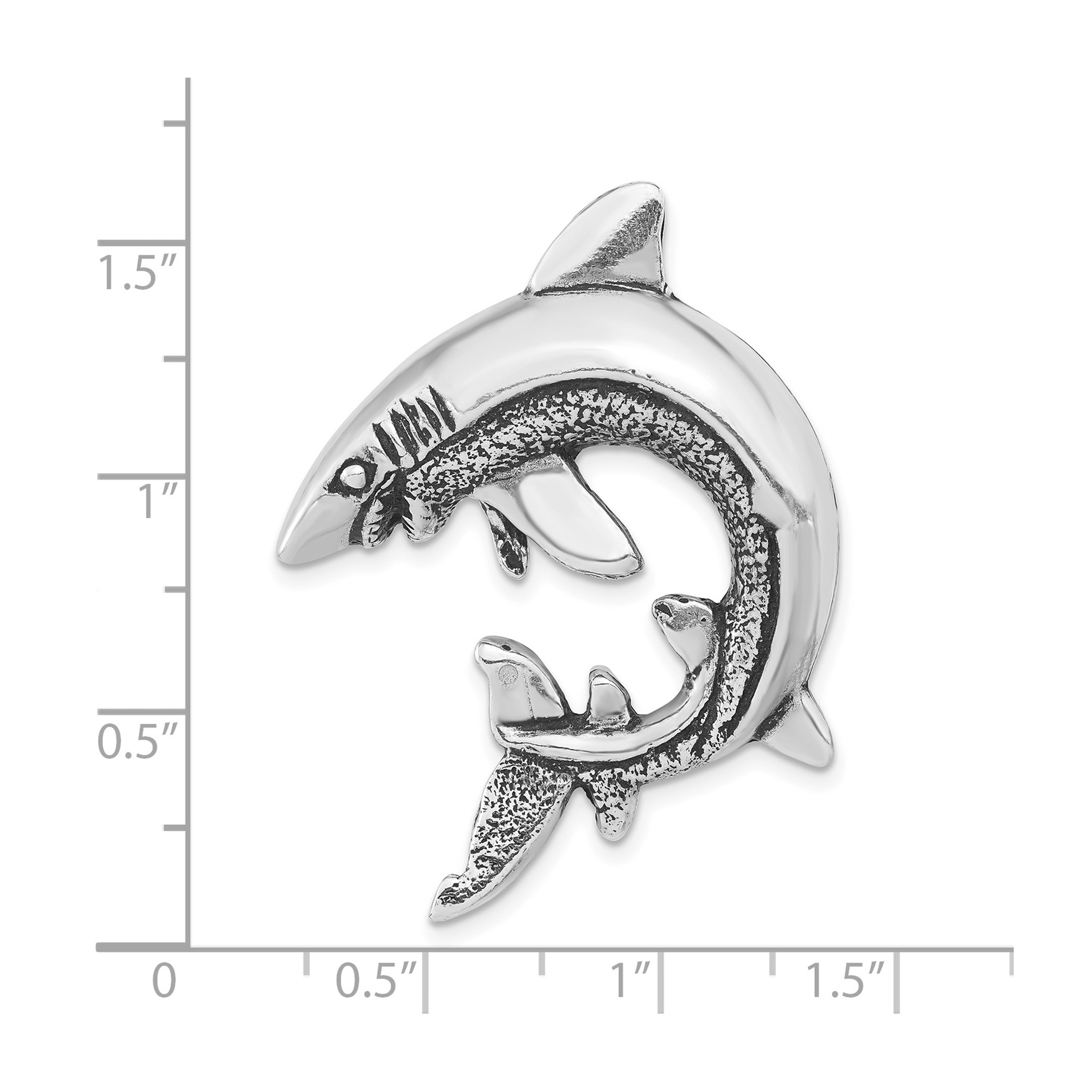 Sterling Silver Antiqued and Textured Shark Chain Slide Pendant