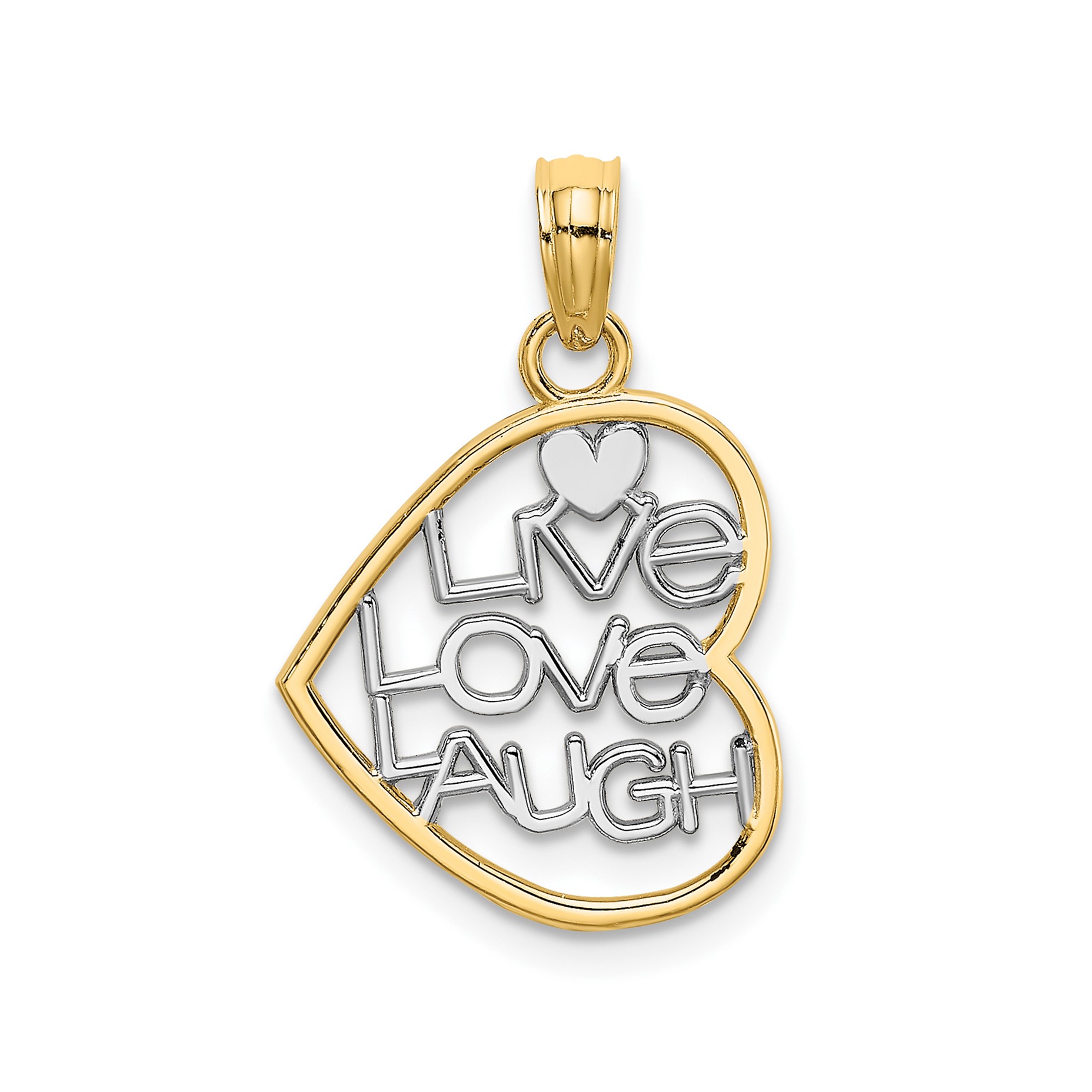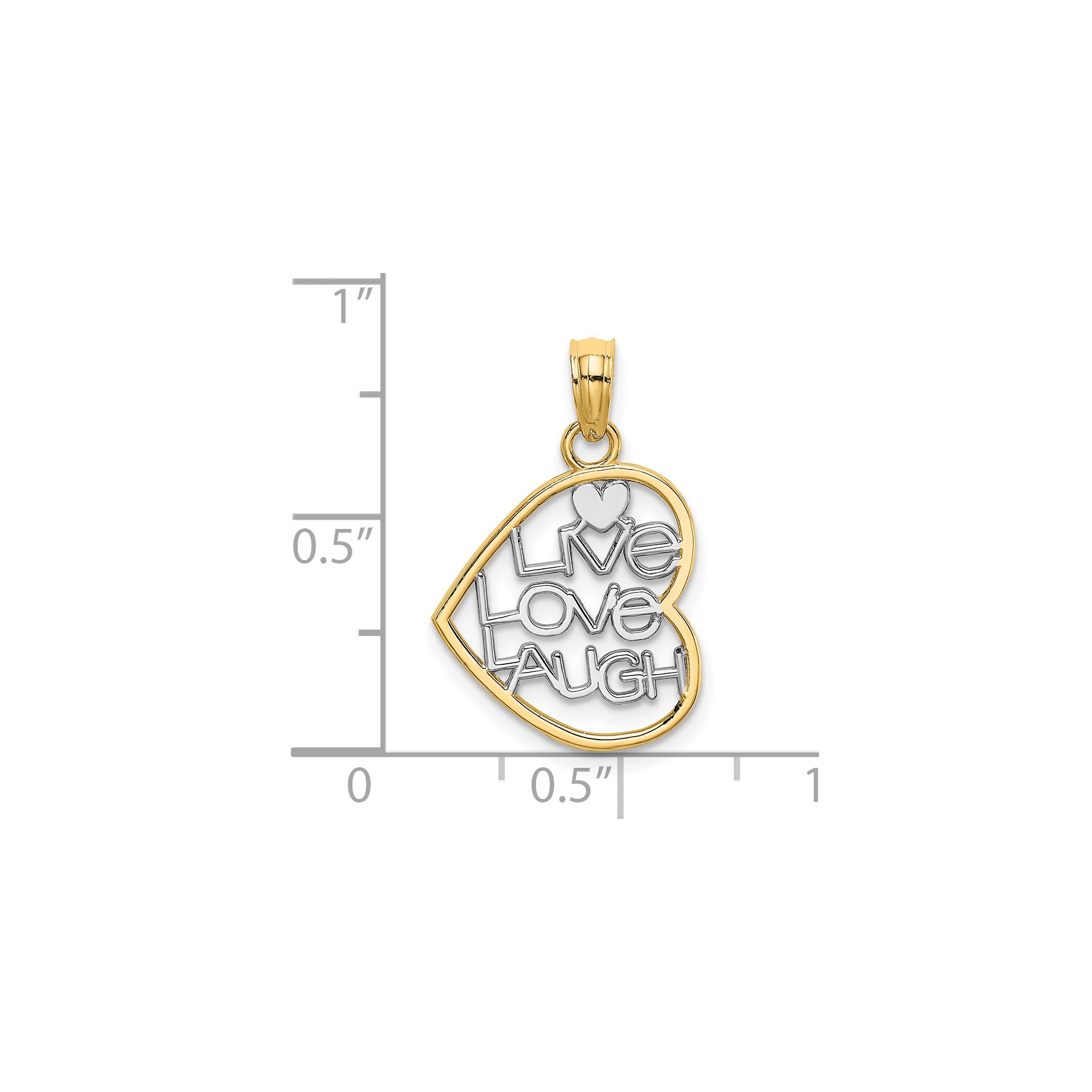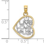 10k and Rhodium-Plated LIVE LOVE LAUGH In Heart Charm