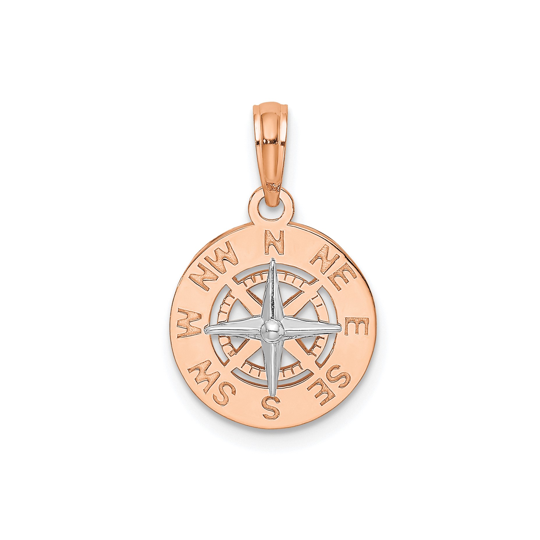 14K Rose and White Gold Mini Nautical Compass Pendant