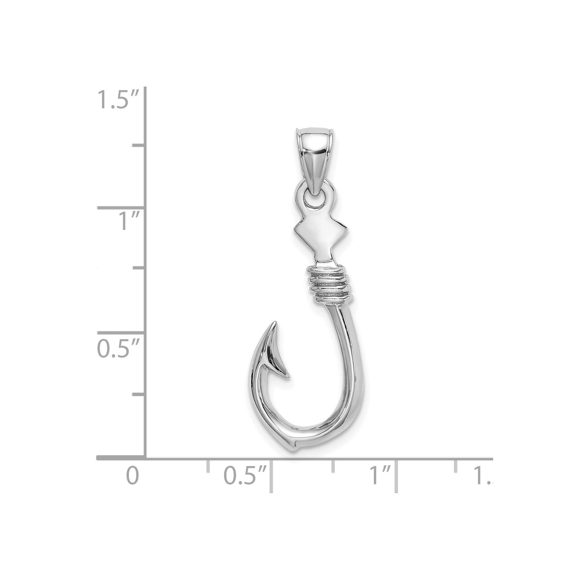 14K White Gold 3-D Large Fish Hook with Rope Charm